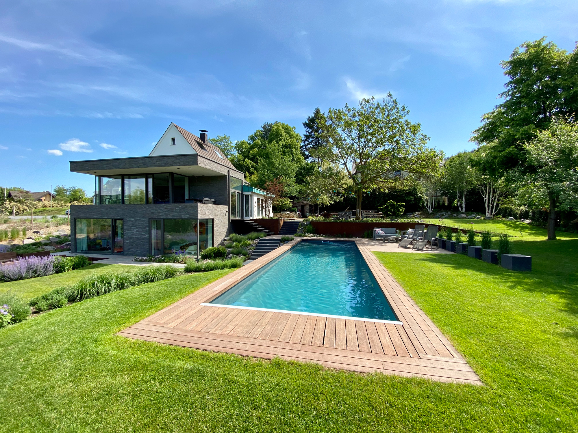 Ansprechender Rheingrün Pool am Abhang mit erhöhter, begrünter Fläche